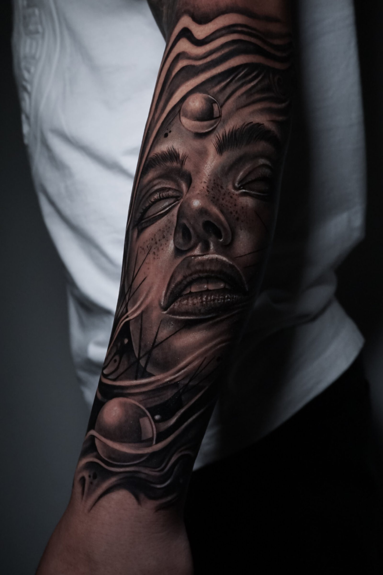 Through his work, Frank explores the line between dream and reality, creating pieces that evoke emotion and storytelling. His black & grey tattoos highlight texture and contrast, while his color work reveals a painter’s understanding of light and tone.